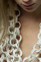 Her interest turns to the mundane and unused. Andrea Auer in particularly likes to use technical material as her row material. Under the title of ‘The White Tube’, the austrian designer has transformed white cabling into bodysculptures as well as jewellery-objects. MT