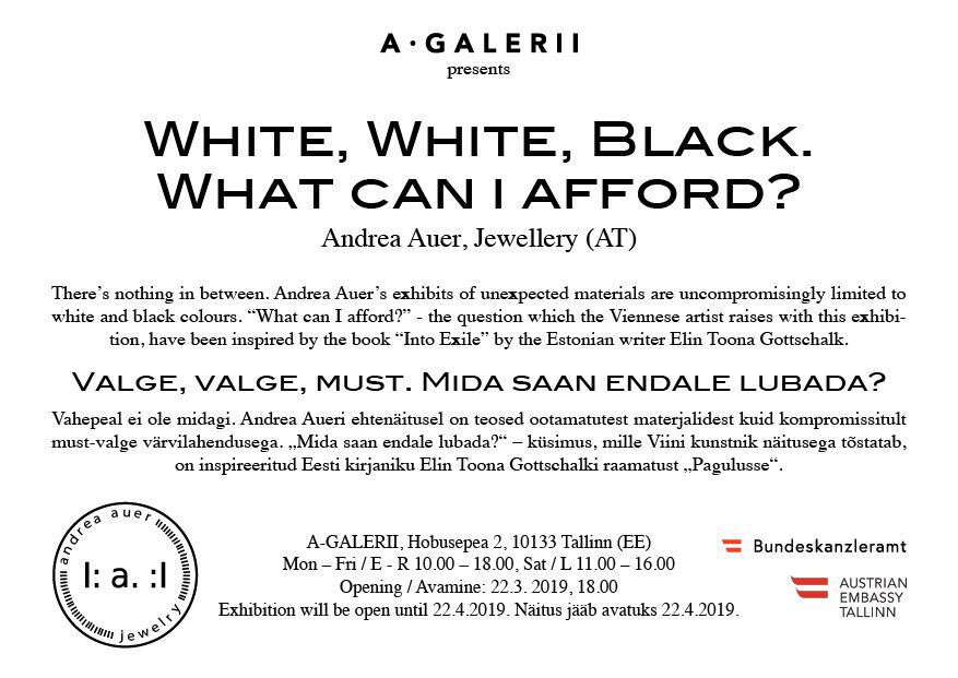 A-Galerii Tallinn Andrea Auer Solo Exhibition White, White, Black. What can I afford?